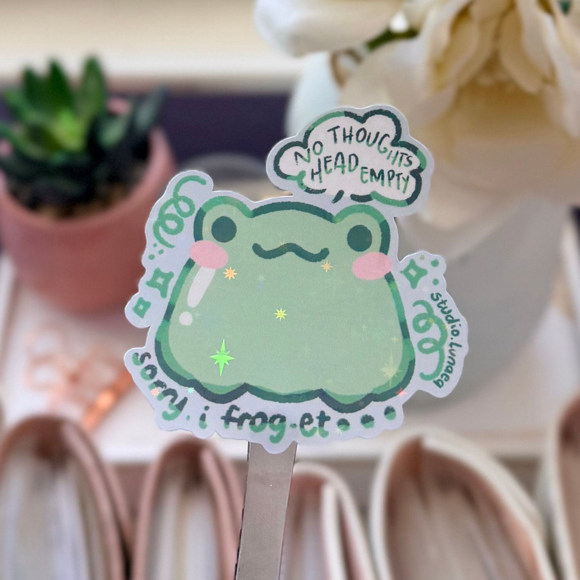 I Frog-et No Thoughts Head Empty Holographic Die-Cut Sticker