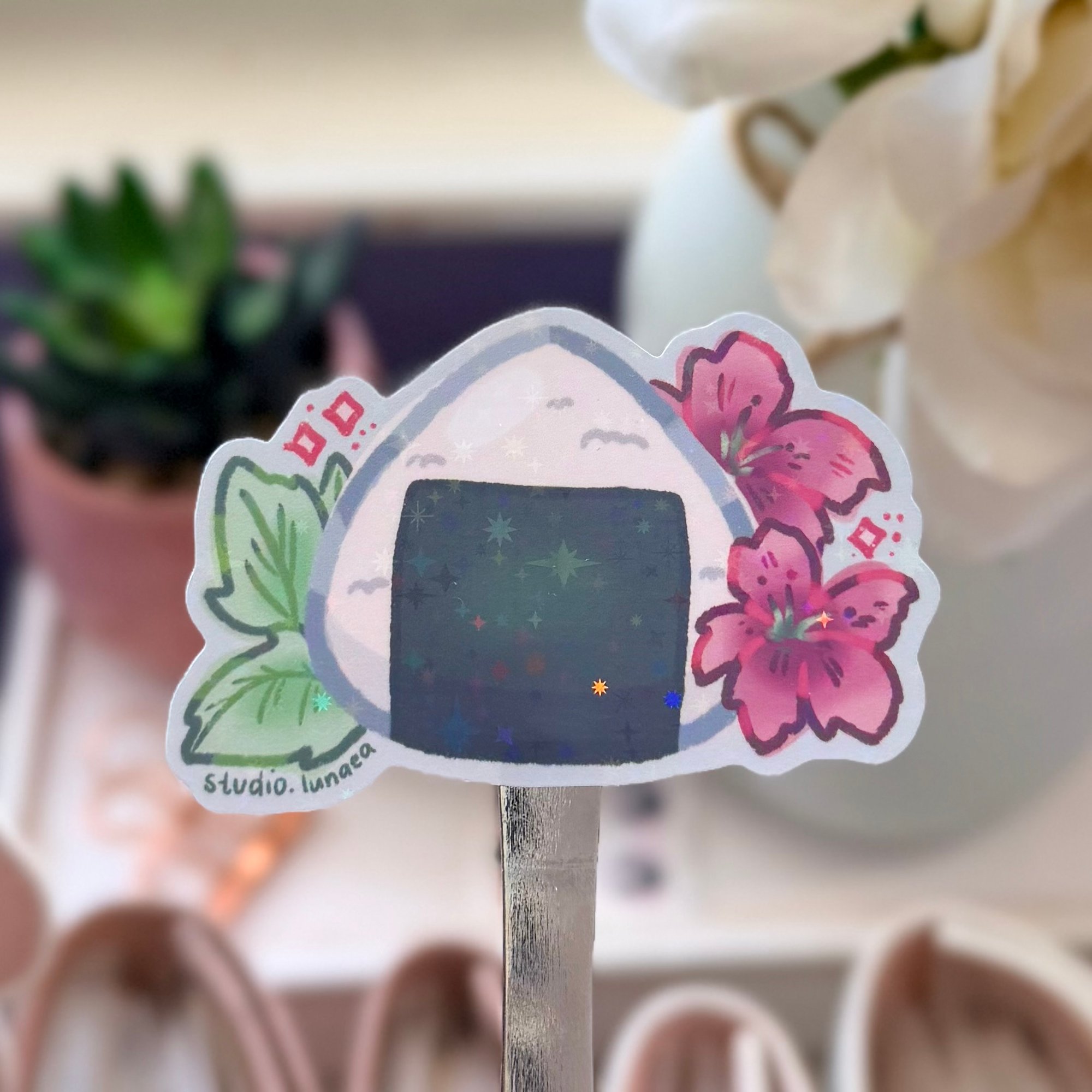 Sakura Onigiri Riceball Holographic Die-Cut Sticker